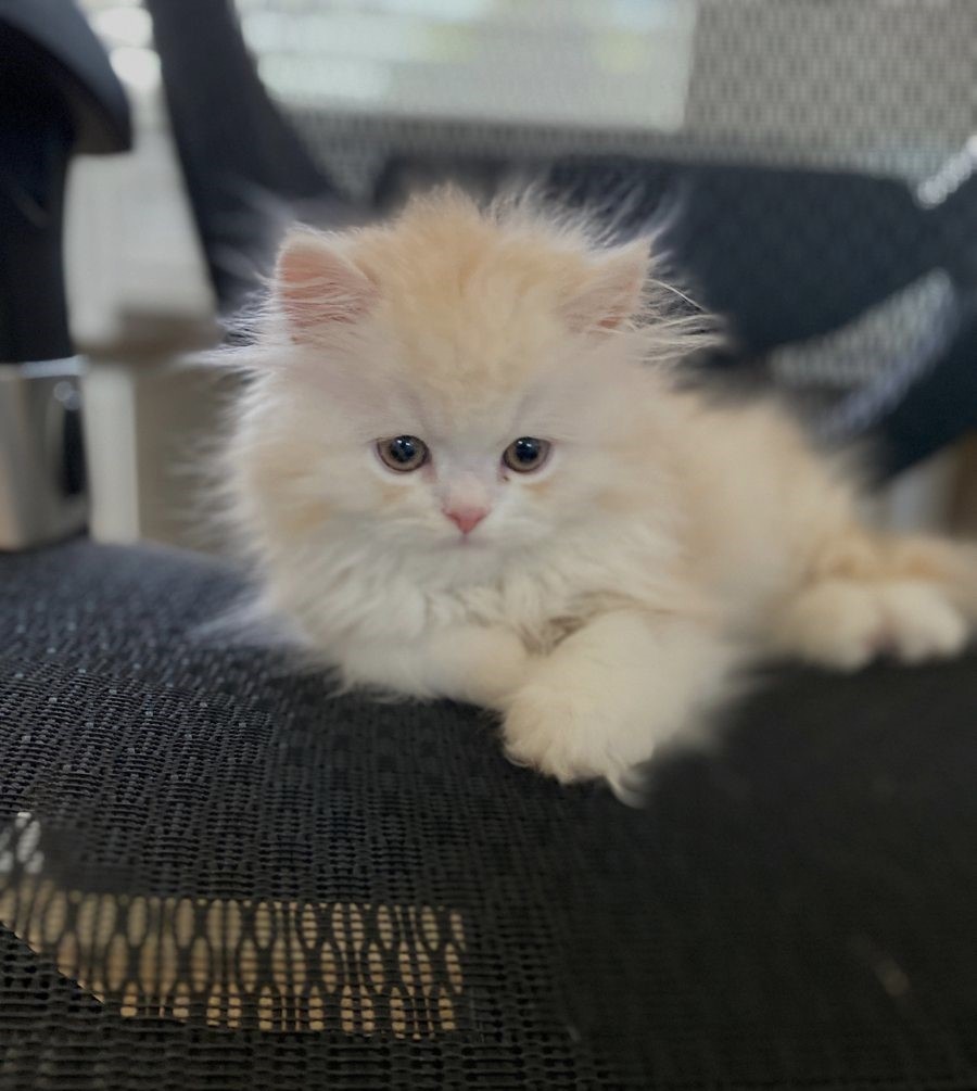 Teddy is a charming Persian kitten with an enormous heart! Tiny and lovable, he loves being near you and is best when snuggling or trailing after you. Teddy’s kind and loving nature makes him an ideal companion for anyone looking for a little friend who brings happiness and affection to daily life.